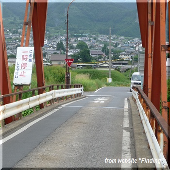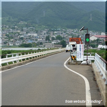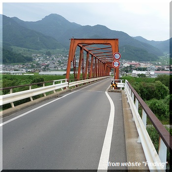 2009年訪問時は、橋の北側より川を渡りました。先に掲載した看板の記載とおり、橋を進むと段階的に道幅が狭まっていきます。その様子は、左の画像をクリックのうえ送り戻りしながらご覧ください。