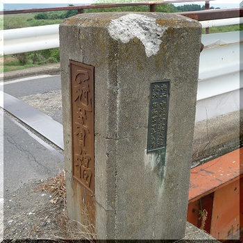 旧橋には標柱があり、橋名や竣工日等が銘板に記され取り付けられてました。また途中の橋桁にも銘板が付けられており、記載された年月から改めて橋が段階的に建設されたことが推測できます。